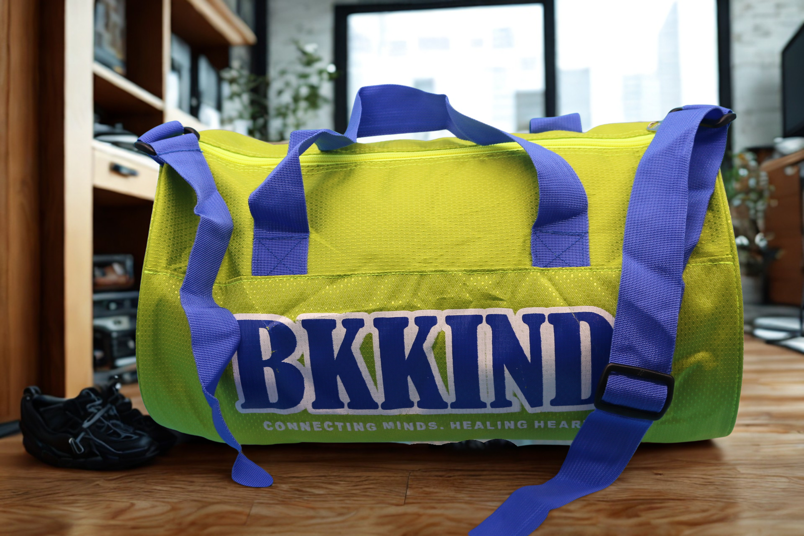 This bag is your boldest workout buddy yet — a vibrant lime-and-blue carrier that shines bright even on tough days. Crafted to handle heavy loads and built with breathable, durable fabric, it’s as strong as your hustle. But the real flex? Its purpose. With every zip, strap, and stitch, it reminds you to carry kindness — to yourself, to your journey, and to those around you.